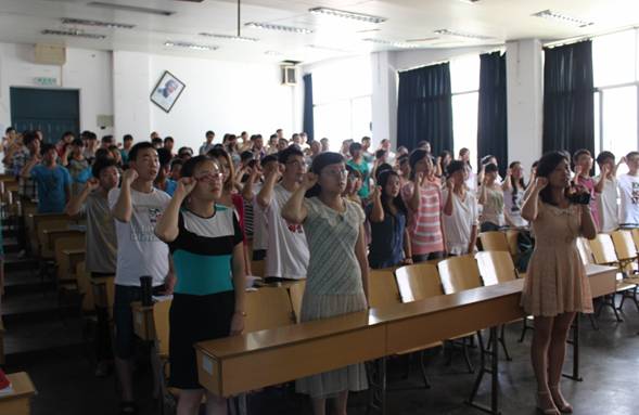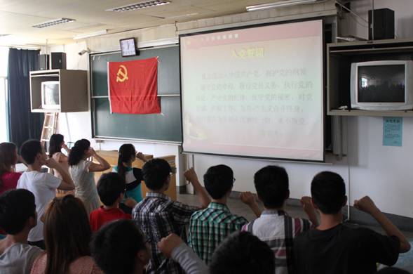 为隆重庆祝建党92周年,重温党的光辉历史,继承和发扬党的光荣传统和优良作风,明确党员的责任和义务,进一步增强党性意识,增强党员队伍的凝聚力和战斗力,6月28日,williamhill中文官网在5101教室举行新党员入党宣誓、老党员重温入党誓词活动,党委副书记杨光红、辅导员王得颖和周洪媛参加了活动。活动由员工第二党支部书记聂玉洁主持。
