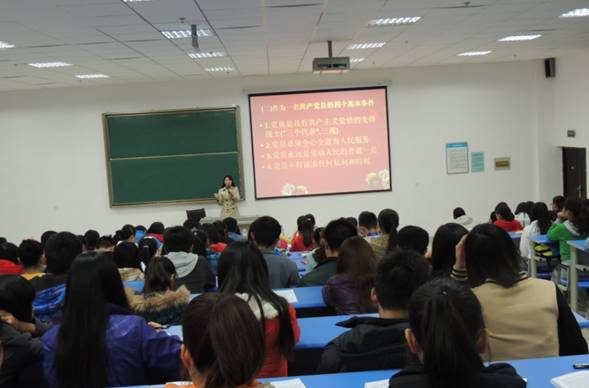周红老师作了动员讲话。她对所有学员们提了三点希望和三个提高:一是努力学习,提高对党的认识;二是端正入党动机,提高自身素质;三是遵守纪律,提高入党意识。