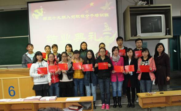 结业典礼在庄严的国歌声中拉开帷幕,首先,杨光红同志作了总结。此次分党校入党积极分子培训班共分为两个班,校本部和花溪校区,校本部这个班由医药卫生管理公司、人文公司、护理公司、法医系、口腔医公司、医员工物工程系和公卫公司共7个院系144名同学组成,经过理论学习、分组讨论、结业考试几个环节,除有2名同学缺考外,其余142名同学顺利结业。杨书记希望广大同学能继续保持学习的精神,用党员的标准严格要求自己,起到模范带头作用,用实际行动,争取早日加入到党组织中来。