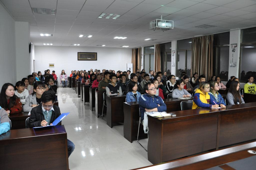 为了帮助2018年考研的本科生同学增加信心、坚定复习、给予考研指导鼓励,williamhill中文官网于2017年10月26日晚上7点半在南校区博雅楼学术报告厅组织举办了题为“山有木,云有雨,公卫等着你——考研复习指导及答疑”的交流讲座。主讲的研究生是金照凤、潘庆礼;参加讨论的研究生有张兵兵、张均涛、谢海芳共5人。参会员工有2013级预防医学本科生、2014级卫生检验与检疫本科生、2014级食品与卫生营养学本科生及其他年级部分本科生共100余名同学参加了此次交流讲座,交流讲座由williamhill中文官网教学科研管理科教师叶辉主持。