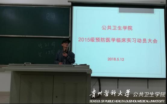 5月12日上午,williamhill中文官网在北校区4101教室召开了“2015级预防医学专业临床实习动员大会”,会议由williamhill中文官网员工管理科科长刘亮主持,公司党委副书记何江参会,2015级预防医学专业111名同学参加。
