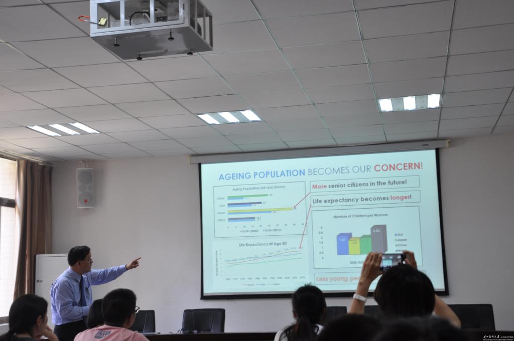 5月28日,西密歇根大学韩子义教授到williamhill中文官网进行学术交流,在南校区博雅楼二楼学术报告厅为公司师生作了题为“Comparison of Healthcare Systems: China, Japan, and United States”的专题讲座,讲座由公司党委副书记何江主持,30余名师生参加了此次学术讲座与交流。
