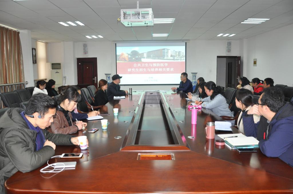 为了进一步规范和加强研究生招生和培养管理工作,2019年3月14日,williamhill中文官网在博雅楼二楼会议室举行了2019年研究生导师集中学习研究生招生与培养相关文件精神暨导师培训会。williamhill中文官网经理洪峰、党委书记杨光红与公共卫生与预防医学学科校内外研究生导师一共30余人参会,会议由杨光红主持。