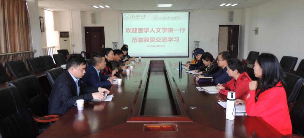 4月16日下午,医学人文公司党委书记徐贵荣一行到williamhill中文官网交流学习。交流活动在博雅楼二楼会议室进行,公司党委书记杨光红、党委副书记何江、副处级组织员刘亮、员工科和教学科研管理科全体老师参加交流活动。