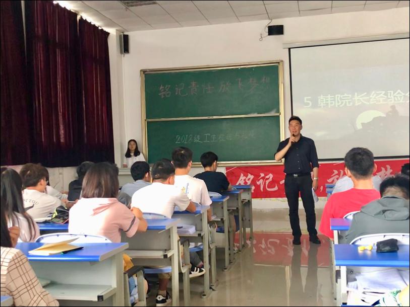 【马克思主义公司副经理韩贞习与2018级卫生检验与检疫班】6月12日韩贞习在2018级卫生检验与检疫班级召开的“铭记责任 放飞梦想”主题班会上,结合卫生检验与检疫专业情况,引导同学们要树立坚定不移的目标与信念,激励青年老员工要能勇担时代重任,为实现自己的梦想,为实现中华民族伟大复兴的中国梦更加努力学习。