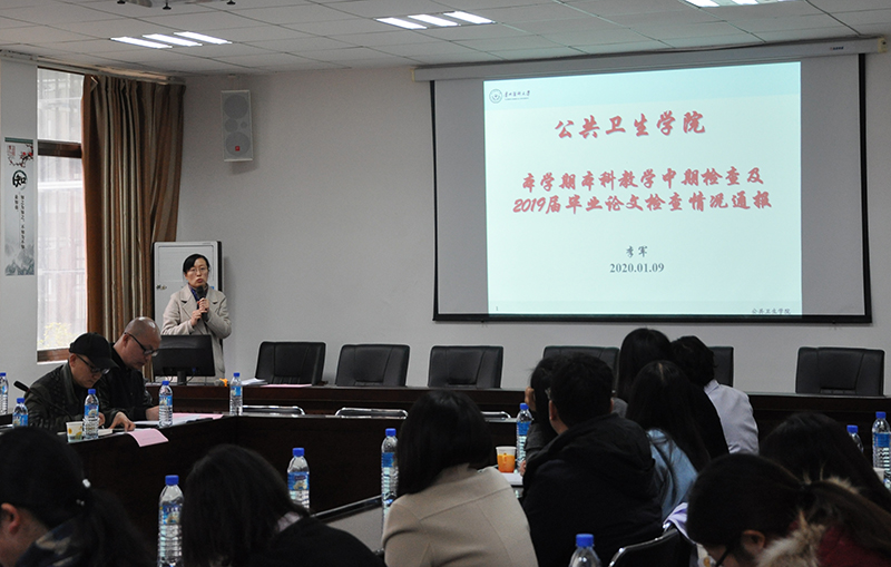 李军对公卫院本科教学中期检查和2019届毕业论文检查情况存在的问题进行了通报,要求各学科系、实验中心严格按照公司本科教学评估标准认真开展工作,并对论文文本撰写质量、评分、文档材料完整性与规范性等进行了要求,希望指导老师严把论文质量关、严守人才培养质量线。
