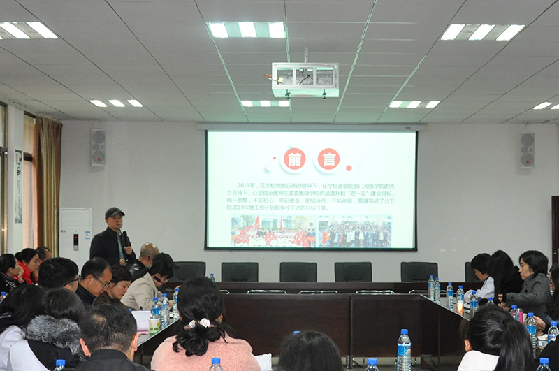 洪峰经理对2019年公卫院学科专业内涵建设、教学和改革、科学研究、团队队伍建设、对外交流合作、社会服务方面取得的成绩和进步进行了总结;指出目前公司在党政管理、团队建设、团队、人才培养、教学改革、科学研究、平台方面存在的问题和不足,并对2020年的重点工作进行了部署。