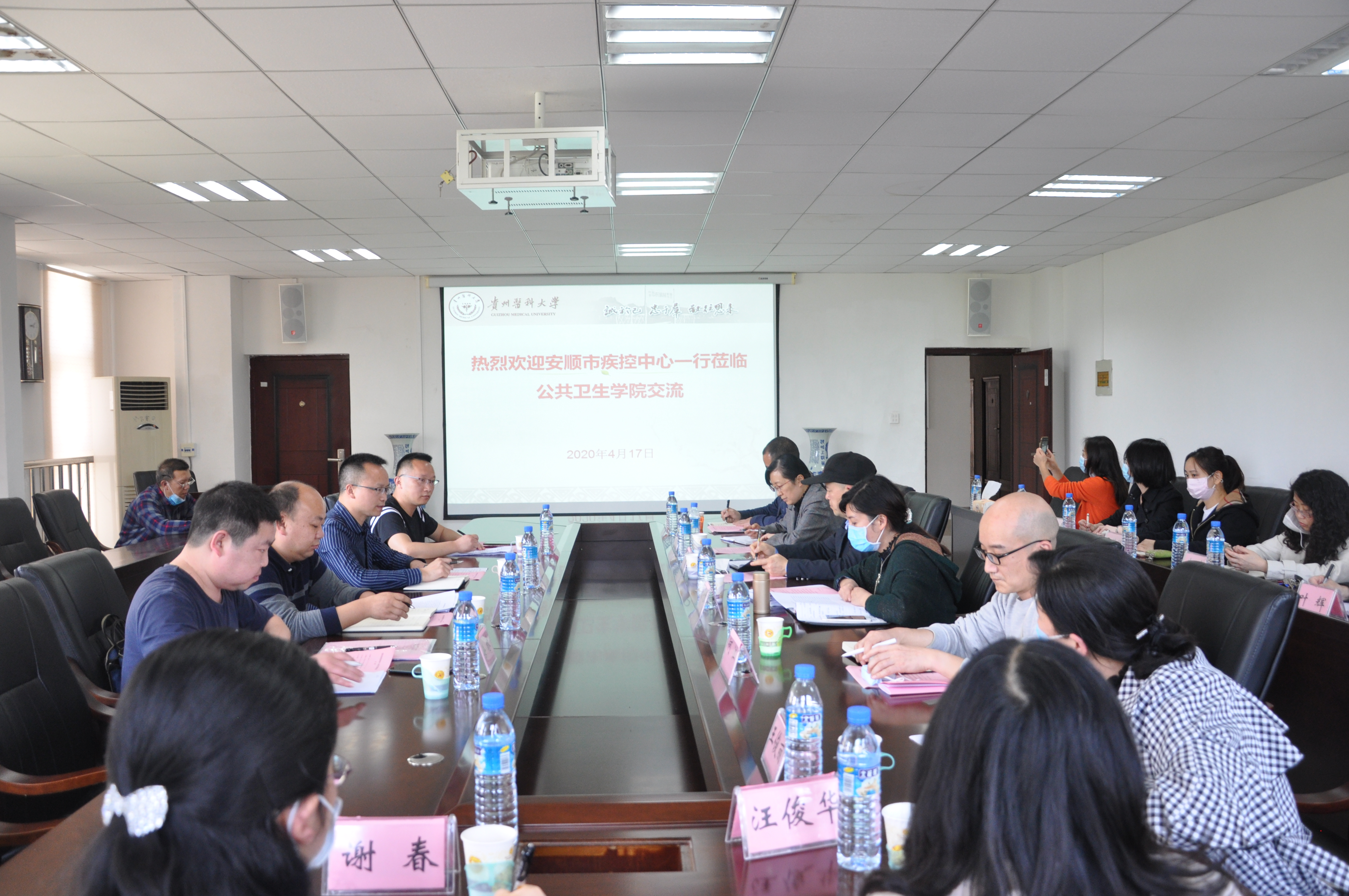 4月17日下午,安顺市疾病预防控制中心主任王应刚、副主任戴乾、检验科副科长徐林、流病科副科长李阳一行4人莅临williamhill中文官网公司开展座谈交流。公司党委书记杨光红、经理洪峰、党委副书记何江、副经理李军、副处级组织员刘亮,以及学系(科室)负责人17人参加座谈。会议由杨光红书记主持。