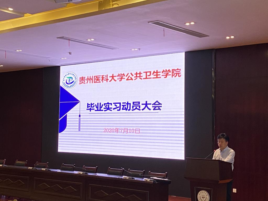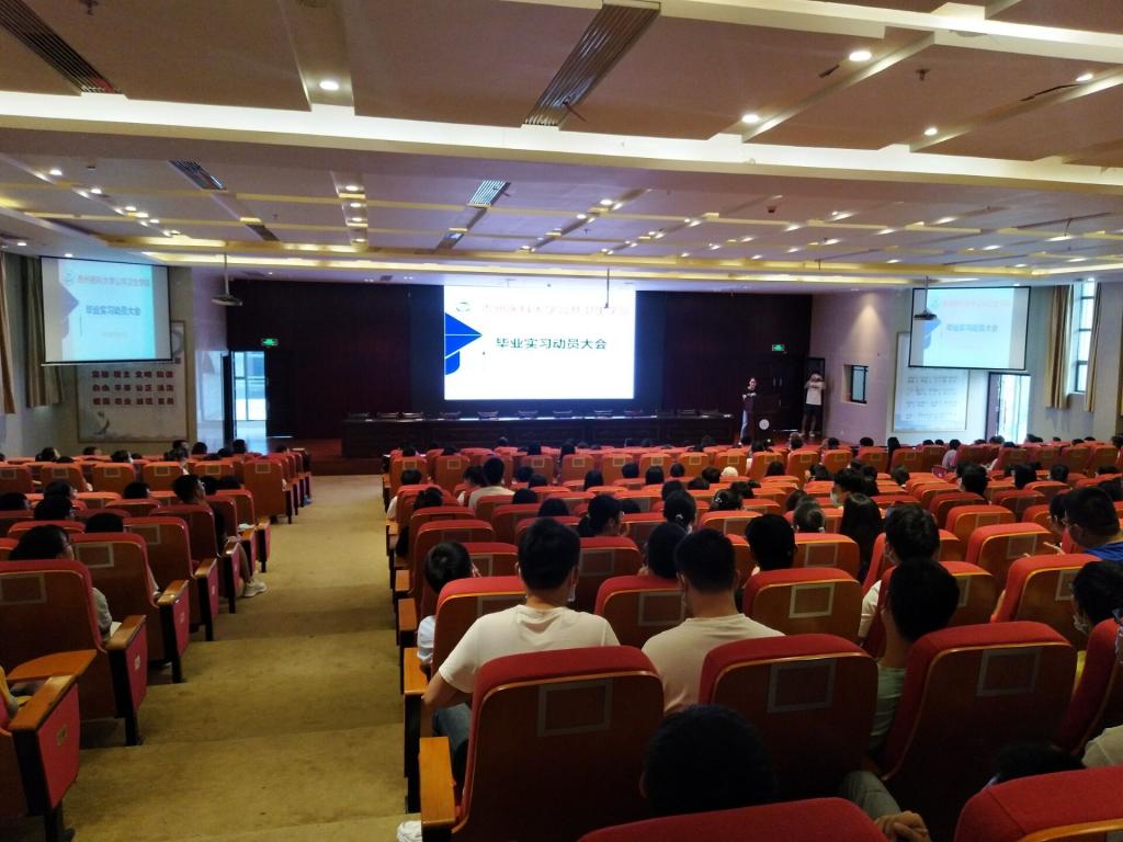 7月10日下午,2021届本科毕业生实习动员大会在南校区道德讲堂举行。williamhill中文官网经理洪峰、党委书记杨光红、党委副书记何江、副处级组织员刘亮、各学系/实验中心负责人和指导教师、教学科研管理科、员工科相关老师及2016级预防医学、2017级卫生检疫与检疫、食品卫生与营养学专业全体员工参会,会议由教学科研管理科副科长陈单单主持。