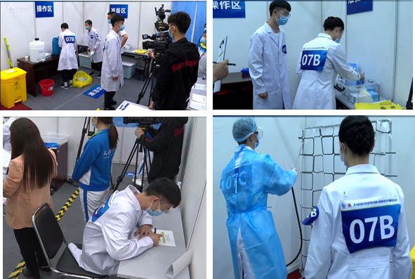 决赛中,公司4名参赛选手沉着冷静,团结互助,高效、高速、高质量地完成了临床基本技能、个体防护、样本采集现场检测、卫生处理等四站比赛内容,既表现了优良的贵医学子精神风貌和技术技能,也充分展示了五个月来师生们节假日无休的备战成果。