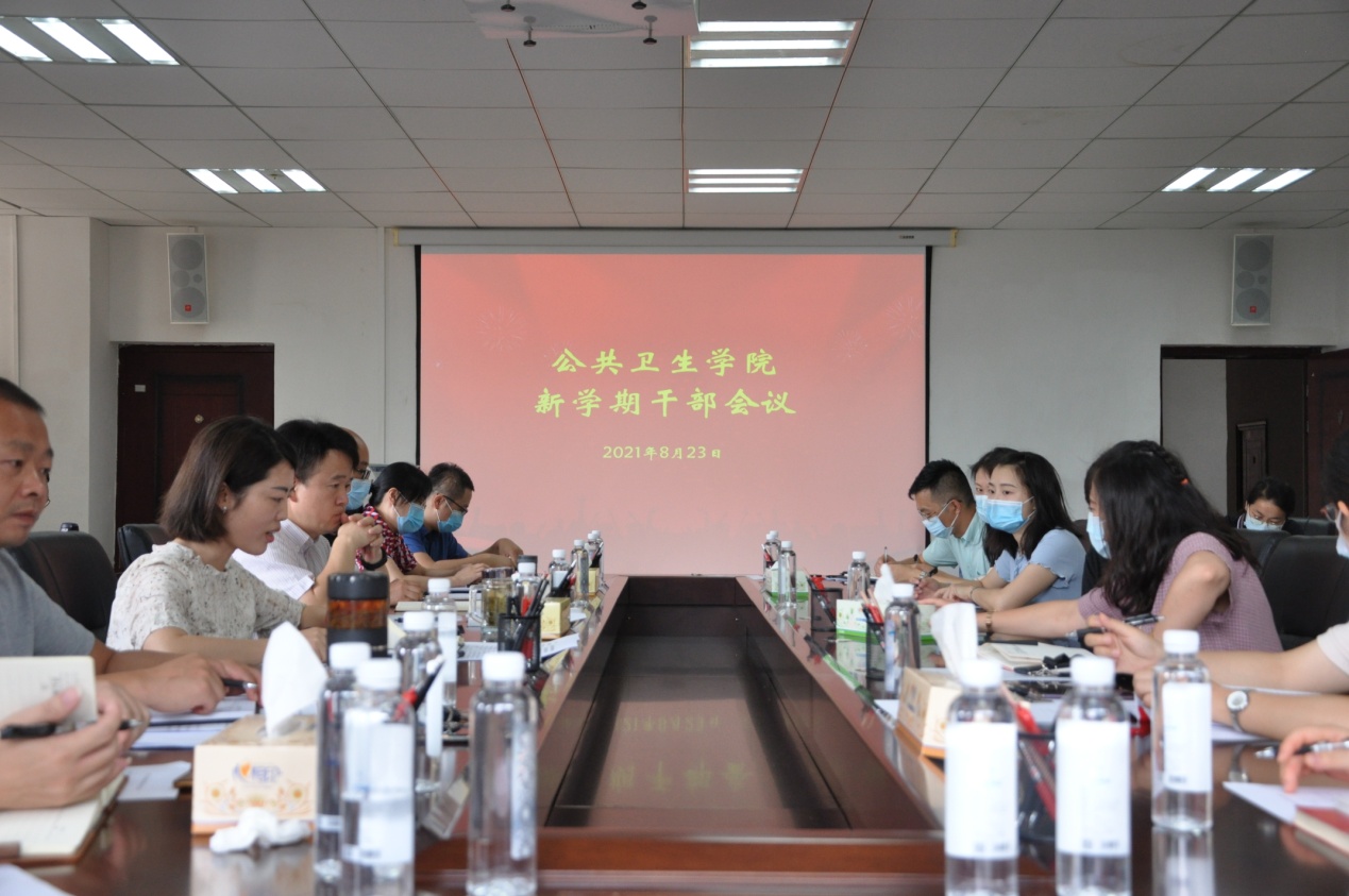 8月23日,williamhill中文官网在博雅楼二楼会议室召开新学期工作会议。公司党政领导班子成员、环境污染与疾病监控教育部重点实验室负责人、化学品毒性检测中心负责人、卫生发展研究院负责人、副科级以上干部、各党支部书记、教工党支部委员、全体辅导员参会,会议由党委书记郑维薇主持。