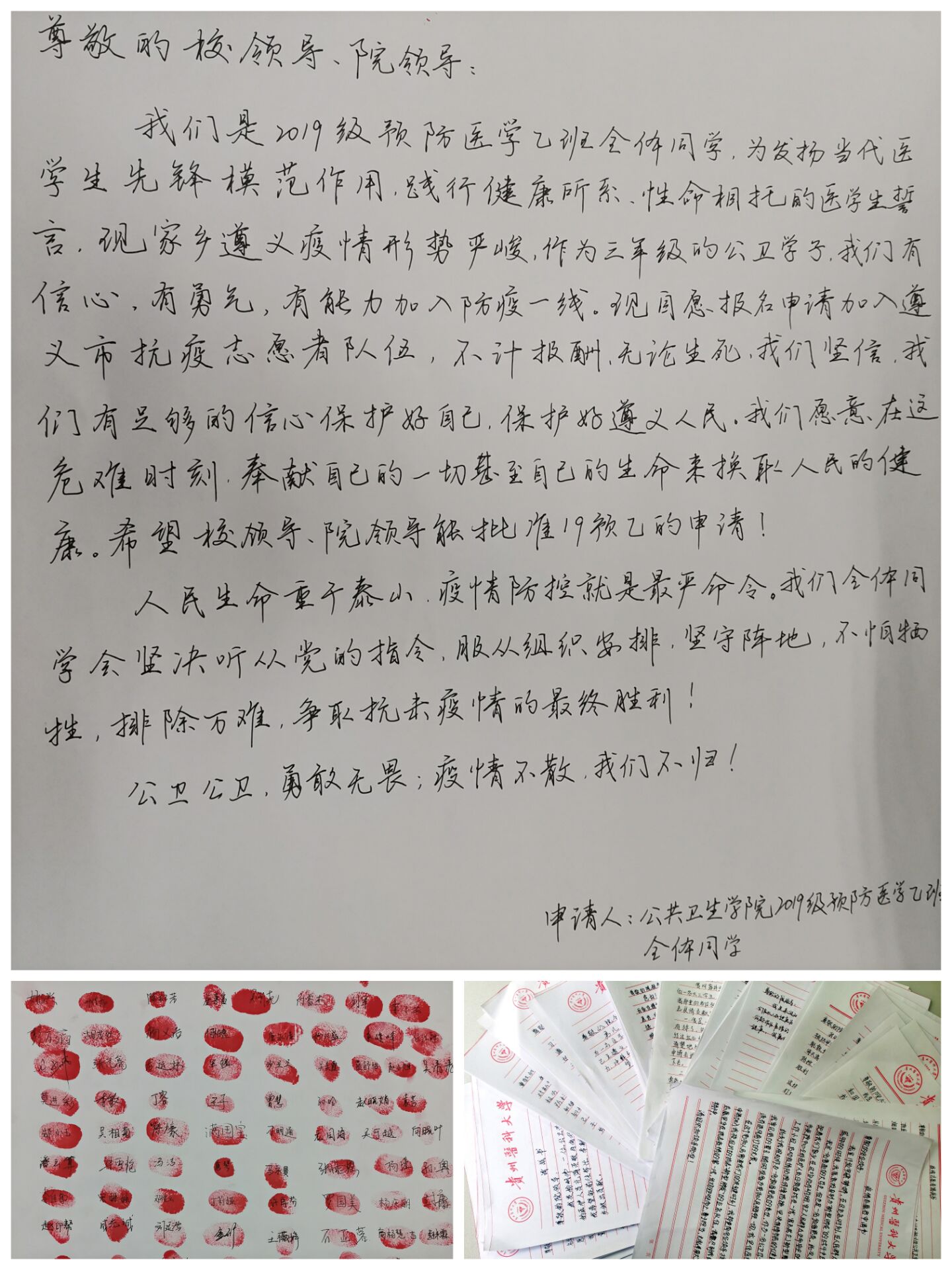 “我申请奔赴一线,抗击疫情,践行医员工誓言,为人民的健康奉献自己的一切!”williamhill中文官网学子,纷纷递上请战书,请愿冲锋抗疫一线!