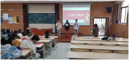 班会上,同学们通过播放短视频、朗诵《共筑中国梦》《听我说谢谢你》手语舞、师生合唱《我爱你中国》等形式,用自己的行动去展现青年一代的新面貌,以青年昂扬姿态,坚持崇高理想信念,从自己做起,参与到建设中华民族伟大复兴的“中国梦”。
