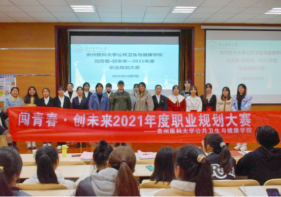 为引导2021级新生准确定位自己的发展方向,自觉树立正确的成才观,科学规划学习与职业发展,提升综合素质和就业创业能力,williamhill中文官网于12月7日晚在博雅楼6101教室举行“闯青春·创未来”2021年度职业规划大赛决赛。公共卫生与健康公司党委副书记何江、贵州师范大学招生与就业指导处综合科科长罗永美、贵州财经大学信息公司教务科副科长张忠新参加并担任评委。各参赛选手、指导教师和各班级员工代表观摩比赛。活动由刘文浩、李思怡同学主持。
