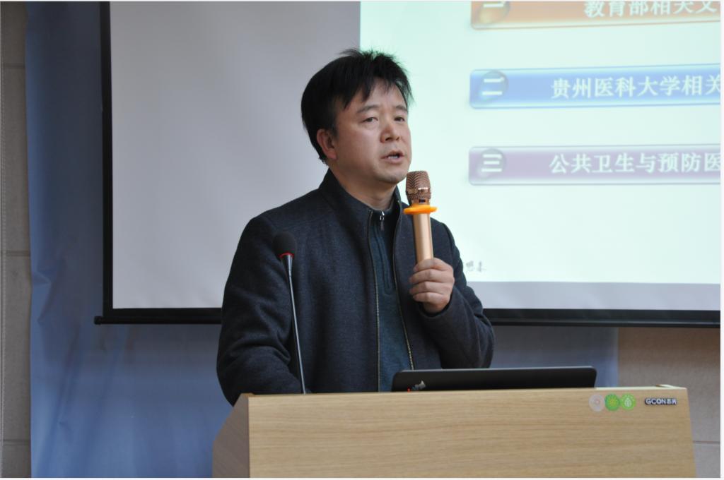 贵州省疾病预防控制中心公共卫生与预防医学研究院负责人冯海哲就实践教学基地做交流发言,他从中心历史发展、现有条件和未来方向介绍了省疾控中心作为公共卫生与预防医学实践教学与公司产品基地培养人才情况,并就实习生与研究生管理与培养结合实际工作对下一步工作的方向提出了思考与计划。