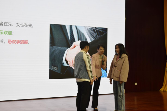 培训会上,闫霞从礼仪的内涵及实质、为什么要学礼仪、日常生活礼仪要点、面试礼仪要点、面试的其它注意事项、常见的面试提问问题等六个方面,形象生动地阐述了礼仪的含义。结合实际案例,分析毕业生在求职、考研复试等情况下如何更好地展现个人自信,帮助同学们了解在不同场合应该遵循的礼仪规范。