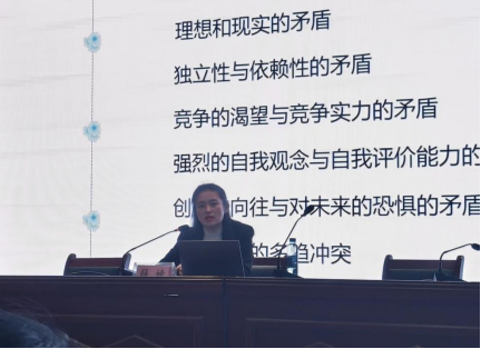 薛婧分别从良好心理健康素养的必要性、毕业生将会面临的心理困扰与冲突、提升心理健康素养的路径三个方面,结合实际案例为同学们讲解和指导,鼓励同学们要科学客观看待各种心理困扰与冲突,培养积极的心理品质,学会管理压力和释放缓解负面情绪,以阳光积极向上的心态迎接今后人生中遇到的每一次挑战。
