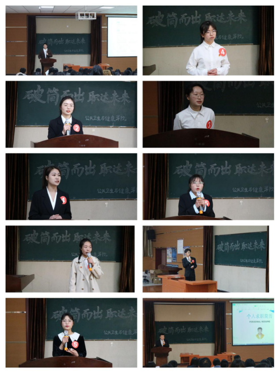 经过班级初选,共计10名选手站上决赛舞台。比赛分简历设计和职业规划两个赛道。选手们在现场展示、答辩环节,熟练地采用霍兰德人格类型测试、性格职业测试及SWOT分析等方式,客观透彻地进行自我认知和环境分析,准确做出职业定位并及时评估调整,提出合理的职业生涯规划及实施方案。
