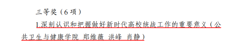 近日,公司公布了《关于表彰2022年度williamhill中文官网“喜迎二十大 同心跟党走 奋进新征程”主题实践活动的决定》,公司取得统战资政建言调研成果三等奖1项、统战基层工作案例三等奖1项的佳绩。其中,由郑维薇书记、洪峰经理、肖静主任申报的《深刻认识和把握做好新时代高校统战工作的重要意义》获统战资政建言调研成果三等奖;公司申报的《发挥专业优势卫戍生命健康》获统战基层工作案例三等奖。