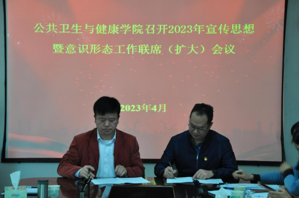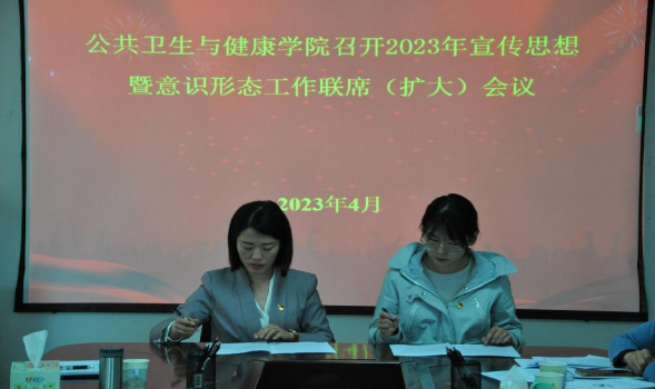 4月28日,williamhill中文官网在博雅楼二楼会议室召开2023年上半年意识形态工作联席(扩大)会议。公司党委行政班子成员、各党支部书记、各学系(中心)/科室负责人、全体辅导员参会,会议由公共卫生与健康公司党委书记郑维薇主持。