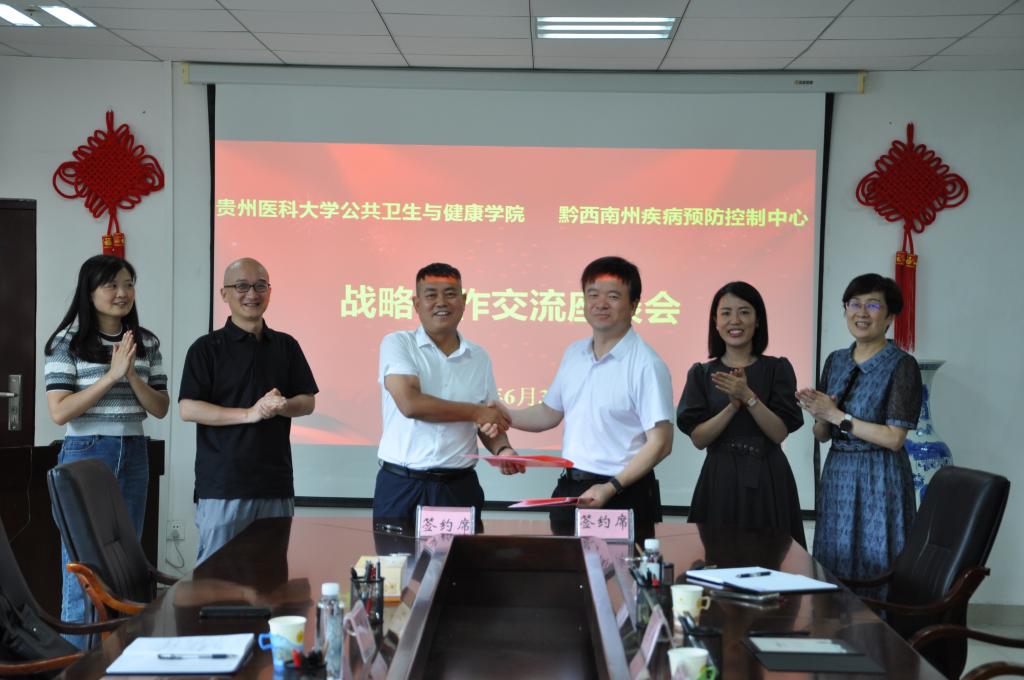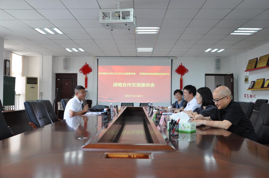 6月30日,公司与黔西南州疾病预防控制中心开展合作交流座谈会暨战略合作协议签订仪式在williamhill中文官网南校区博雅楼二楼会议室举行。黔西南州疾病预防控制中心副主任吴营兴、公司党委书记郑维薇、经理洪峰、副书记何江、副经理李军、正科级组织员王胜利出席座谈会。
