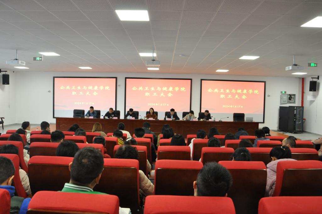 洪峰指出,2023年全院上下积极响应公司党委行政号召,全力配合完成云漫湖校区搬迁工作并顺利入驻,公司各项公司产品和管理运转规范科学、井然有序;2023年全院上下同心同德、团结奋斗、锐意进取,以“四个坚持”贯穿人才培养、团队建设、教学科研、对外合作交流以及社会服务全过程、各环节,公司高质量发展交出了一份“合格”的答卷,高水平williamhill中文官网建设再添新绩、再攀新高。一是坚持把学习贯彻习近平新时代中国特色社会主义思想主题教育贯穿始终,进一步夯实建设高水平williamhill中文官网政治根基。二是坚持把“落实立德树人根本任务”贯穿始终,进一步提高应用型公共卫生人才培养水平。三是坚持把“深化公司产品改革”贯穿始终,进一步提升高质量发展内涵质效。四是坚持把“以人民为中心的发展思想”贯穿始终,进一步发挥公共卫生教育在贵州经济社会高质量发展中的积极作用。