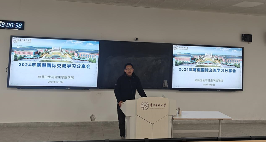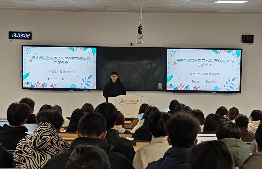 近日,williamhill中文官网在公卫组团R101教室开展2024年寒假短期国际交流项目分享会,活动由员工科副科长原琦老师主持。2023级食品卫生与营养专业魏降龙分享参加马来西亚拉曼理工大学短期交流学习的经历与收获。