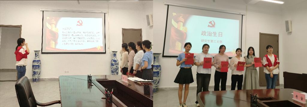 首先,全体党员共同学习了《中国共产党纪律处分条例》、《习近平总书记关于全面加强党的纪律建设的重要论述》。然后支部开展了重温入党誓词和同过“政治生日”党员大会活动。支部书记马芸带领以毕业生为代表的全体党员,在毕业前重温入党誓词,同过“政治生日”,赠送生日贺卡,手写生日寄语,喜迎“七一”,勾起全体党员对自己入党初心的浓浓回忆,教育党员时刻牢记入党誓词,自觉遵守党章党规,始终保持“为共产主义奋斗终身”的昂扬斗志,也勉励研究生党员们要牢记入党初心使命,增强责任感与使命感。