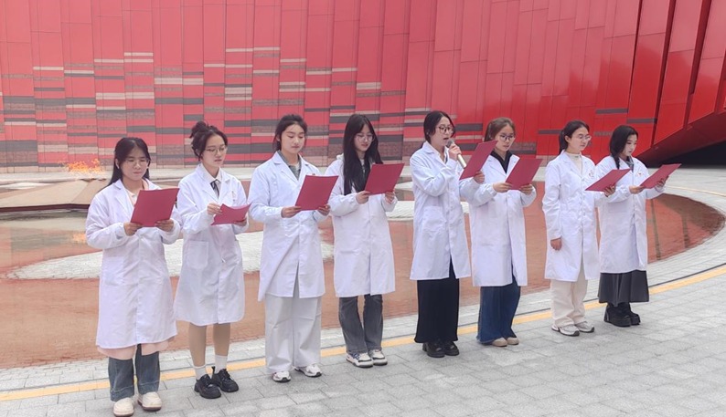 参观结束后,员工第二党支部书记原琦老师带领大家重温入党誓词,鼓舞全体党员坚定理想信念,不忘入党初心,全心全意为人民服务。弘扬长征精神,赓续红色血脉,厚植爱国情怀,砥砺强国之志。
