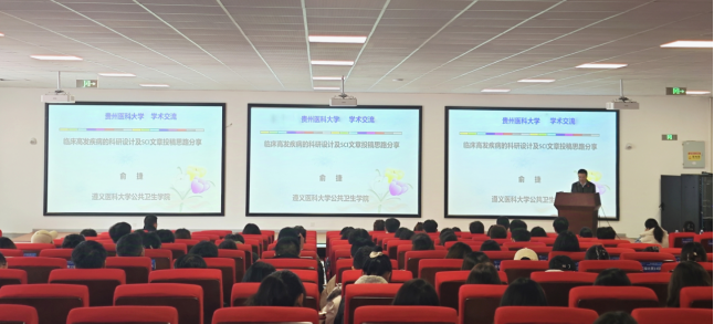 俞捷教授以“临床高发疾病的科研设计及SCI文章投稿思路分享”为题,强调科研选题应符合我国和贵州省科研战略需要,结合兴趣,开展创新性的研究工作,逐渐形成自己的特色。首先以哮喘为例,深入浅出地分五部分系统介绍了临床高发疾病的研究思路。此外,详尽介绍了环境卫生学课题“环境内分泌干扰物—壬基酚暴露诱发神经-内分泌-免疫相关疾病及锌硒茶干预研究”的研究思路及其课题组SCI文章发表情况、国内外学术交流情况。最后,俞捷教授从“SCI论文的分类、好文章三要素、写什么和如何写、初写者的建议、投稿前的准备工作、投稿前准备的基本文件、投稿流程、如何选择推荐审稿人、如何正确对待审稿意见和退稿”等方面详尽地分享了SCI文章投稿的宝贵经验。