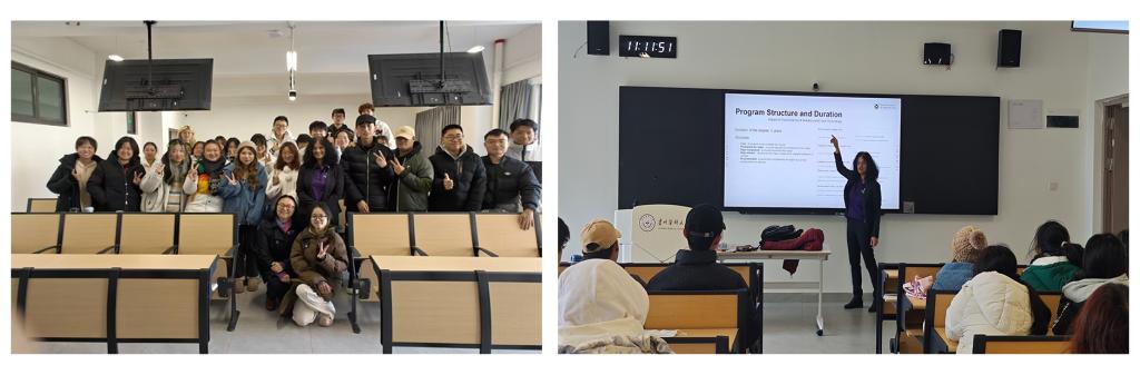 座谈结束后,澳大利亚昆士兰大学代表团与2024级中高计划食品健康与营养专业员工进行亲切友好见面,Sangeeta Prakash向员工生动介绍了昆士兰大学,让项目员工对今后在澳学习生活更加充满信心。