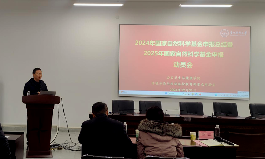 会上,王大朋对汤磊副书记一行莅临公卫院开展国基申报动员表示热烈的欢迎与由衷的感谢。他首先对公卫学科近三年国家自然科学基金申报立项情况及存在问题进行总结,随后对2025年的申报工作做了相关安排部署。最后,鼓励全体教师要以饱满的热情和积极的态度投入到申报工作中,同时提高标书撰写质量,力争2025年国家自然科学基金申报及立项数量上再创新高。