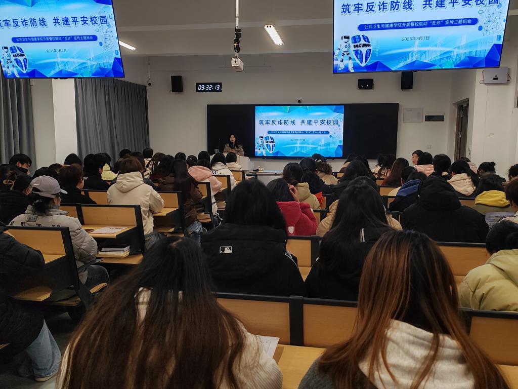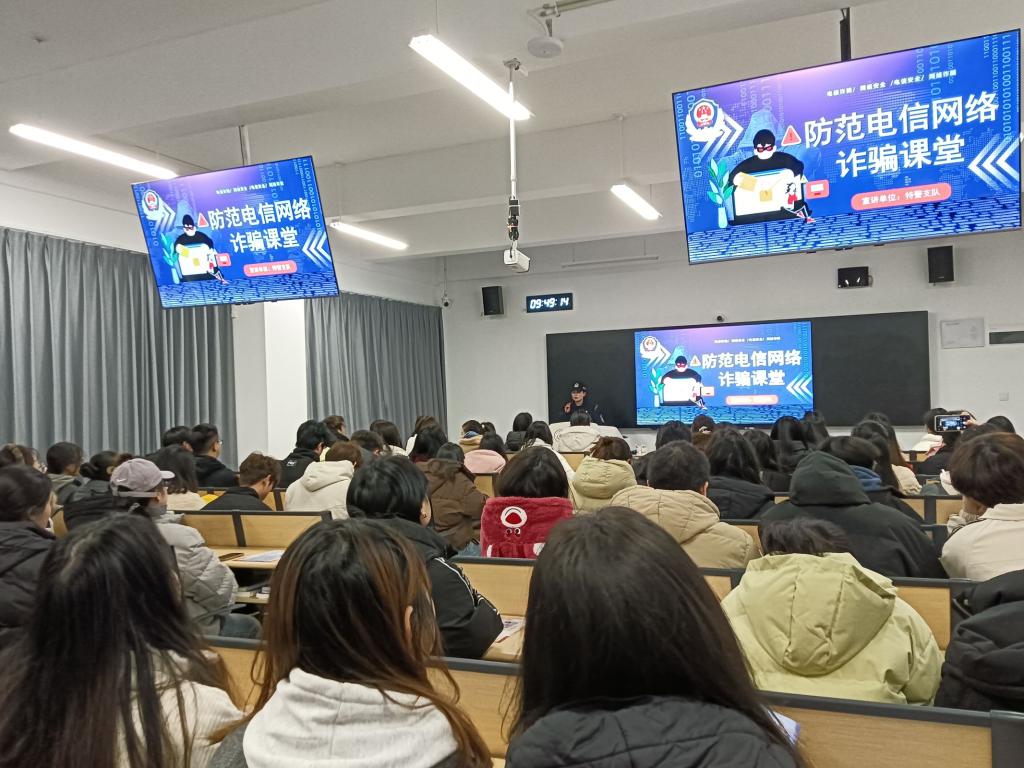 为进一步提高公司员工防范电信网络诈骗的意识和能力,共同营造安全、和谐、文明的校园环境,3月7日,校保卫处联合贵安新区公安局特警支队在云漫湖校区公卫组团C1栋L104教室开展警校联动反诈宣传主题班会。williamhill中文官网员工科副科长原琦、保卫处刘永康、辅导员李德健和100余名在校本科生参加本次班会。