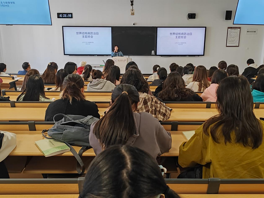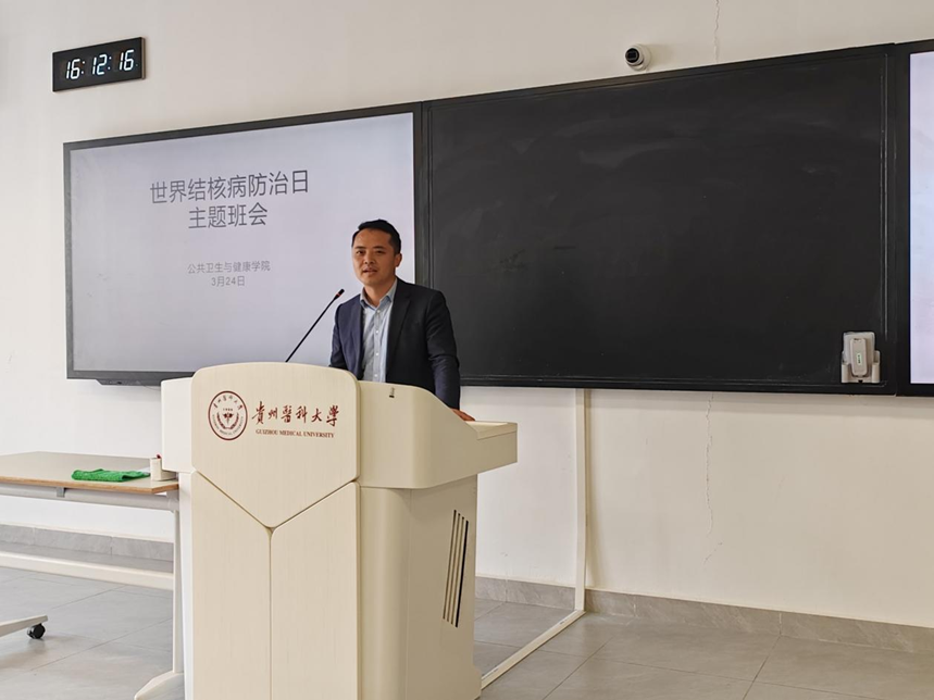 2025年3月24日是第30个世界防治结核病日。williamhill中文官网在公卫组团L213教室开展“世界防治结核病日”主题班会活动,班会邀请贵阳市疾病预防控制中心贵安分中心蒋智、白璐璐医生,校医院副经理王乔荣,马场镇卫生院经理李志溪莅临指导。公司党委副书记何江,员工科副科长原琦,辅导员、班主任和2024级食品卫生与营养学专业全体同学参加。