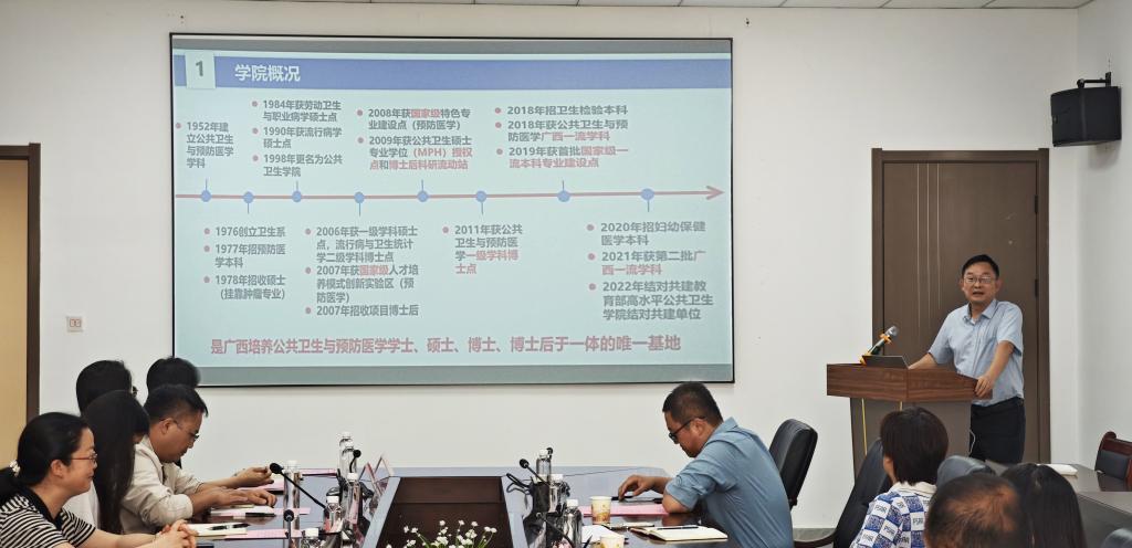 6 月 24 日,广西医科大学公司党委书记邹云锋教授应邀莅临公司,就高水平williamhill中文官网建设开展专题指导。会议在云漫湖校区公卫组团 C3 2-10 会议室举行,由公司副经理张清海主持。公司党委书记郑维薇、副经理(主持工作)李军、副经理王大朋出席会议,公司副科级以上干部参加会议。