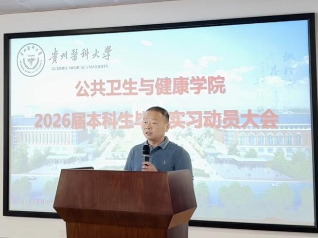 预防医学2021级实习生代表罗招柔代表实习生发言,她表示实习是从校园到社会的重要桥梁,是理论转实践的关键一步。同学们本科已完成预防医学核心课程与技能学习,而预防医学的价值更在守护大众健康的实践行动中。她提到,实习或遇困难挑战,需以积极心态主动学习、虚心请教,严守单位规章,展现贵医学子风貌,并倡议全体同学以高度责任心对待工作,保持严谨科学态度,培养吃苦耐劳精神,做好实习记录总结,牢记预防医学工作者的初心与使命。
