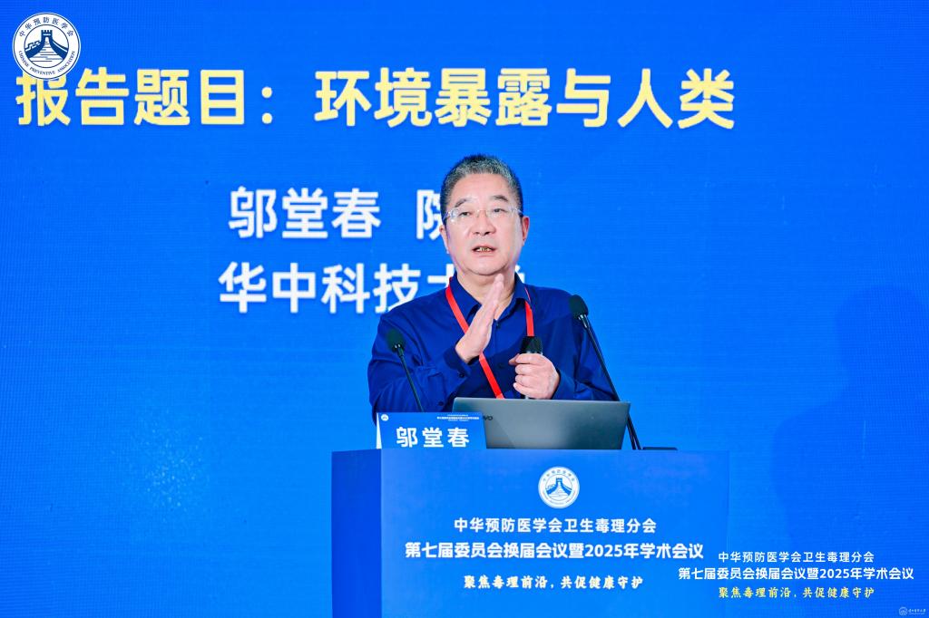 中华预防医学会卫生毒理分会主任委员屈卫东教授在致辞中表示本次会议精心设计了“主旨报告—专题引导报告—专题研讨”的全链条议程,覆盖从基础毒理学机制到政策实践的完整链条,期待通过学术交流,破解新兴污染物及污染物复合暴露的毒理机制与健康效应难题,推进产学研融合发展。他指出,卫生毒理分会将继续发挥学会平台优势,团结全国毒理学领域人才破解环境健康领域的重大科学问题,推动毒理学研究成果转化为环境健康标准、风险防控政策与民生保障技术,真正实现“从实验室到公众健康”的价值闭环。