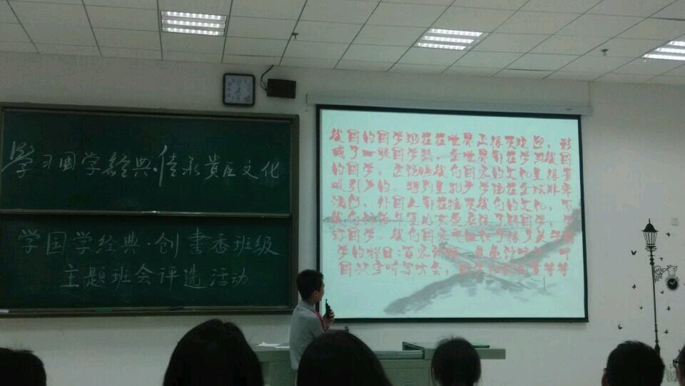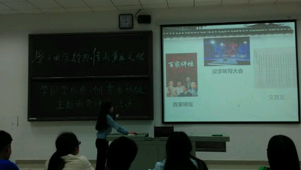 4 24 ,​williamhill中文官网“学国学经典·创书香班级”评比活动在花溪校区4404教室举行。公司分团委员工会干部及2013级、2014级各班级各专业70余名同学参加了本次活动。