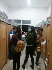 晚上21点30分,各小组集合完毕后,在柴颖老师的带领下分别对3栋女生宿舍、5栋男生宿舍和1栋男生宿舍进行检查,检查人员现场评分、拍照。此次活动的评分内容包括寝室主题、卫生、内务、装扮等,同学们大多都用一些我们平时不用的废品装饰了寝室的墙、门窗、书桌、阳台等地方,粘贴上简单的贴图,展示了各自宿舍的魅力。22:00整,所有寝室检查完毕,检查人员集合进行评分统计。