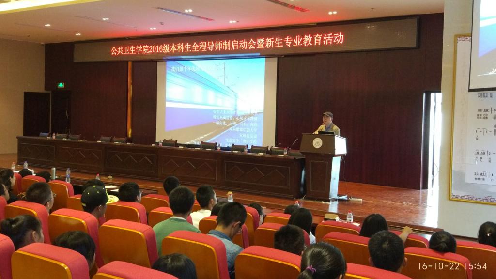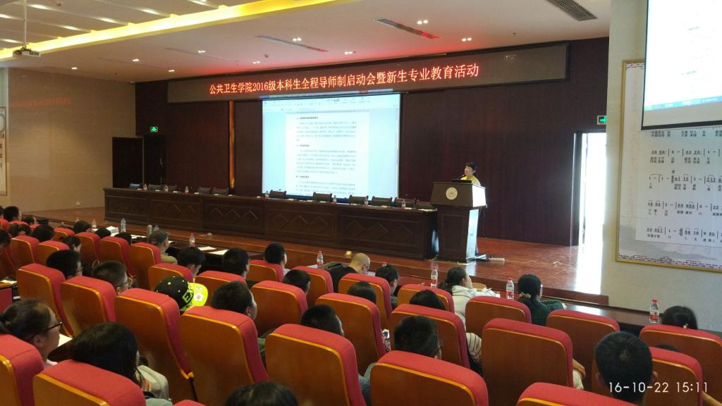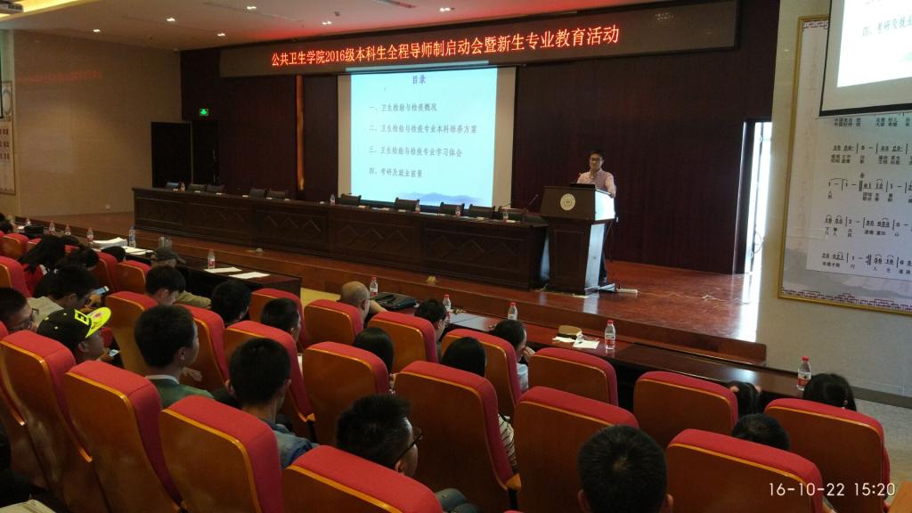 10月22日(周六)下午14:00,“2016级本科生全程导师制启动会暨新生专业教育活动”在公司南校区道德讲堂举行,williamhill中文官网经理洪峰、党委副书记何江、各专业负责人、各科室负责人、本科生导师、辅导员及2016级预防医学专业、卫生检验与检疫专业、食品卫生与营养学专业全体本科生共计350余人参加,启动会及新生专业教育活动由何江主持。