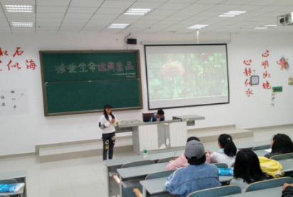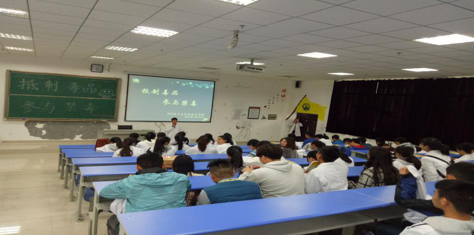 为贯彻落实贵州省教育厅下发的《关于做好国家禁毒委检查组交叉检查问卷调查准备工作的通知》的要求,williamhill中文官网2016级预防医学、卫生检验与检疫、食品卫生与营养学三个专业于4月21日下午分别在南校区x1501、x1504教室开展了以“珍爱生命,拒绝毒品,构建和谐校园”为主题的禁毒宣传教育活动,此次活动由辅导员孙静主持,2016级289名同学参加。