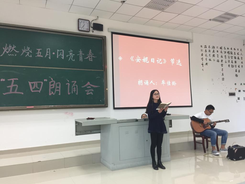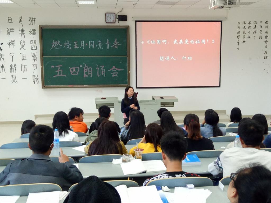 为继承和发扬五四运动的光荣传统,感知革命前辈的爱国热情,营造良好的校园文化氛围。williamhill中文官网分团委,员工会于2017年5月8日下午6时在4505教室组织举办了以“不忘初心·勿忘前行”为主题的朗诵活动,分团委负责人柴颖老师参加了此次活动。