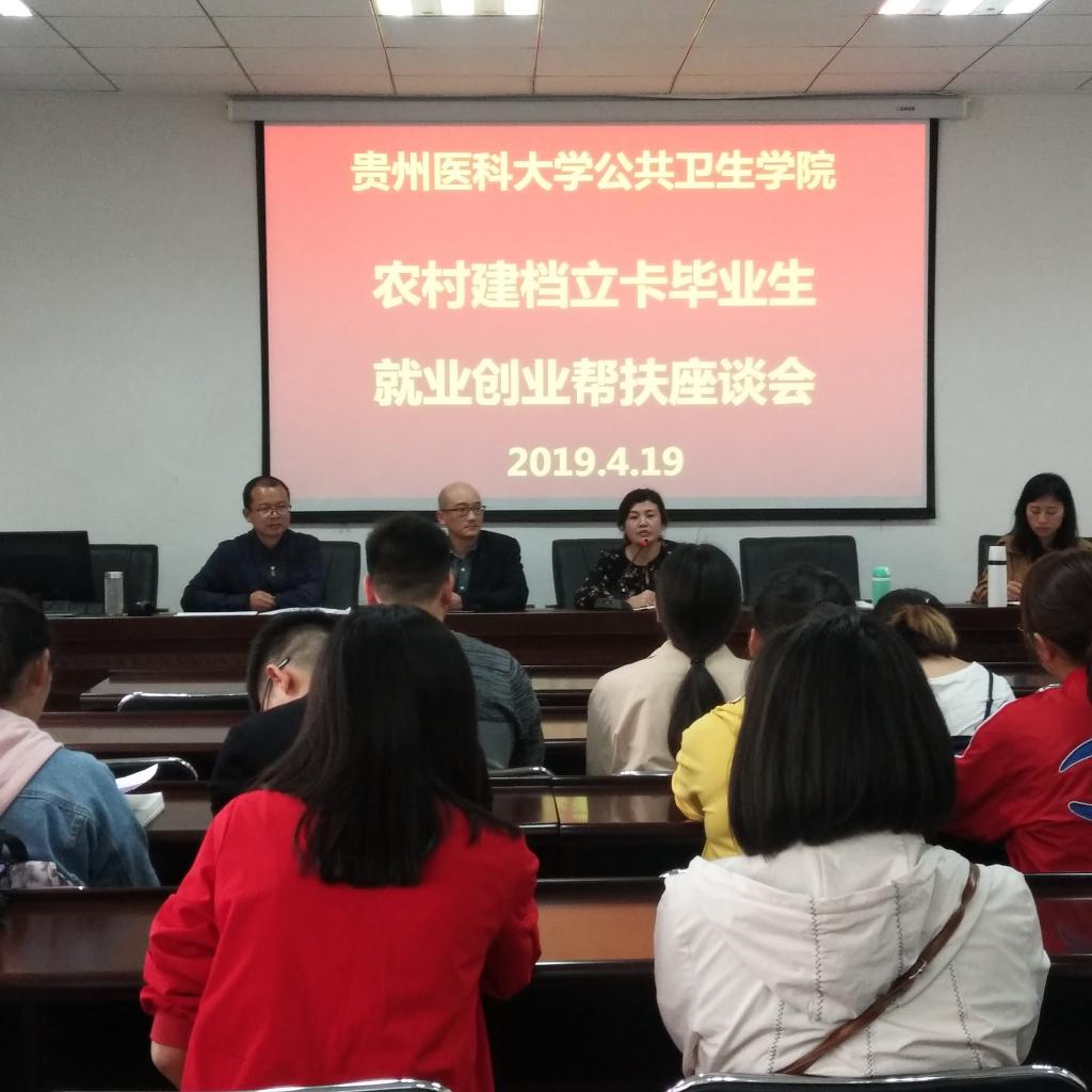为深入贯彻落实中央和省委、省政府实施精准扶贫、决胜全面小康的战略部署,助力全省脱贫攻坚大局,进一步推进家庭经济困难毕业生就业创业工作,努力确保家庭经济困难毕业生实现充分就业。按照公司毕业生就业工作的整体安排,4月19日,公共卫生公司在博雅楼2楼学术报告厅召开“2019届农村建档立卡毕业生就业创业帮扶座谈会”。公共卫生公司党委书记杨光红、副书记何江、副处级组织员刘亮、员工科全体人员以及公司2019届农村建档立卡毕业生参加座谈会,座谈会由何江主持。