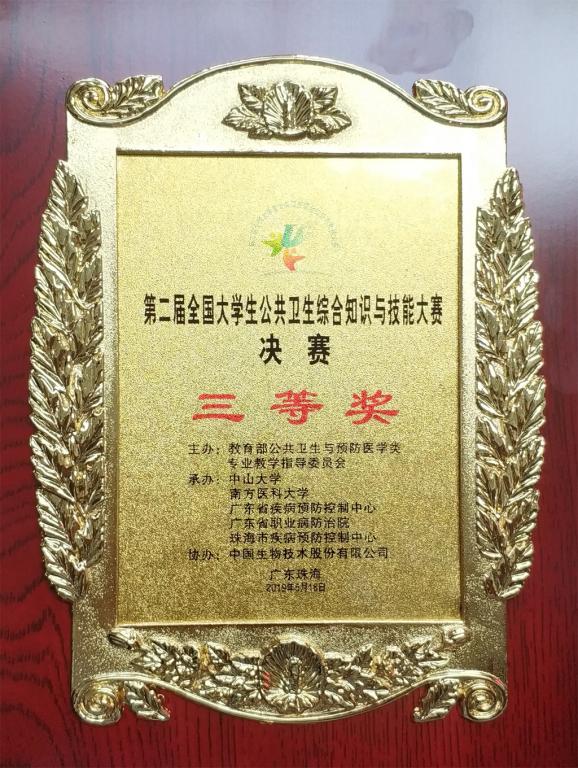 5月18日,由教育部公共卫生与预防医学类专业教学指导委员会主办,中山大学、南方医科大学、广东省疾病预防控制中心、广东省职业病防治院、珠海市疾病预防控制中心承办的“第二届全国老员工公共卫生综合知识与技能大赛”决赛在中山大学珠海校区举行,由预防医学专业2014级本科生刘思源、阳玉珍、刘秀秀、胡宇欣组成的williamhill中文官网代表队,经过激烈的角逐,最终荣获三等奖。