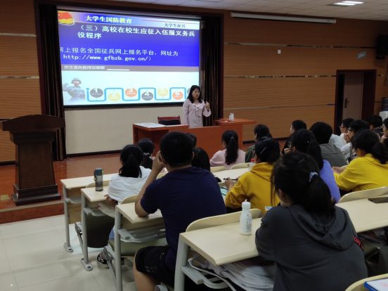 《中华人民共和国宪法》规定:“依照法律服兵役和参加民兵组织是中华人民共和国公民的光荣义务”。结合“高校老员工征兵入伍相关信息政策”以及《williamhill中文官网关于老员工应征入伍的优惠政策(试行)》,郝雪君为同学们详细介绍了老员工应征入伍需要满足的基本身体条件和政治条件,呼吁同学们积极响应党和国家的号召,参军入伍,为全民国防贡献青春与智慧。