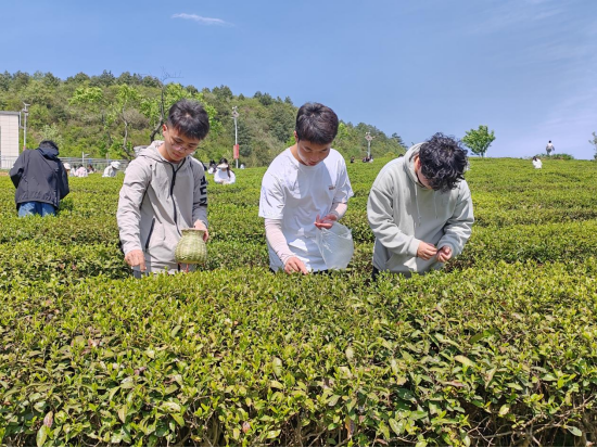 春日茶园里,员工们穿梭于茶垄间,在弯腰、抬手的劳作中锻炼体魄,一片茶叶,串联起劳动的辛苦、自然的馈赠和文化的韵味。公司将劳动课开在这片茶山上,让同学们共同体验劳动的价值和乐趣。