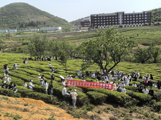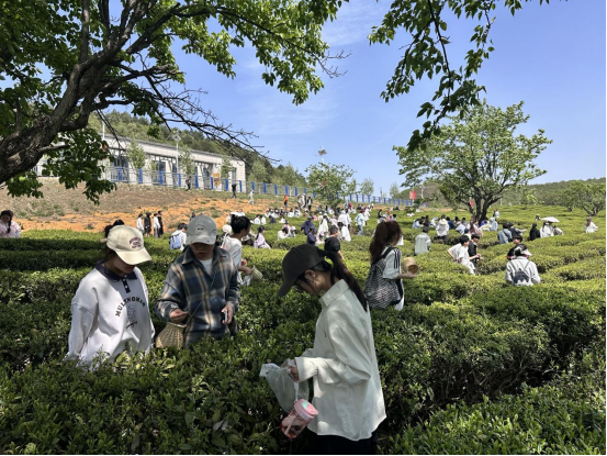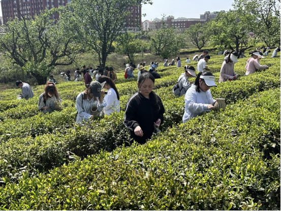 4月15日,公司组织各年级约300余名同学参加公司“茶艺秀”劳动教育活动,现场采摘约26斤茶叶。