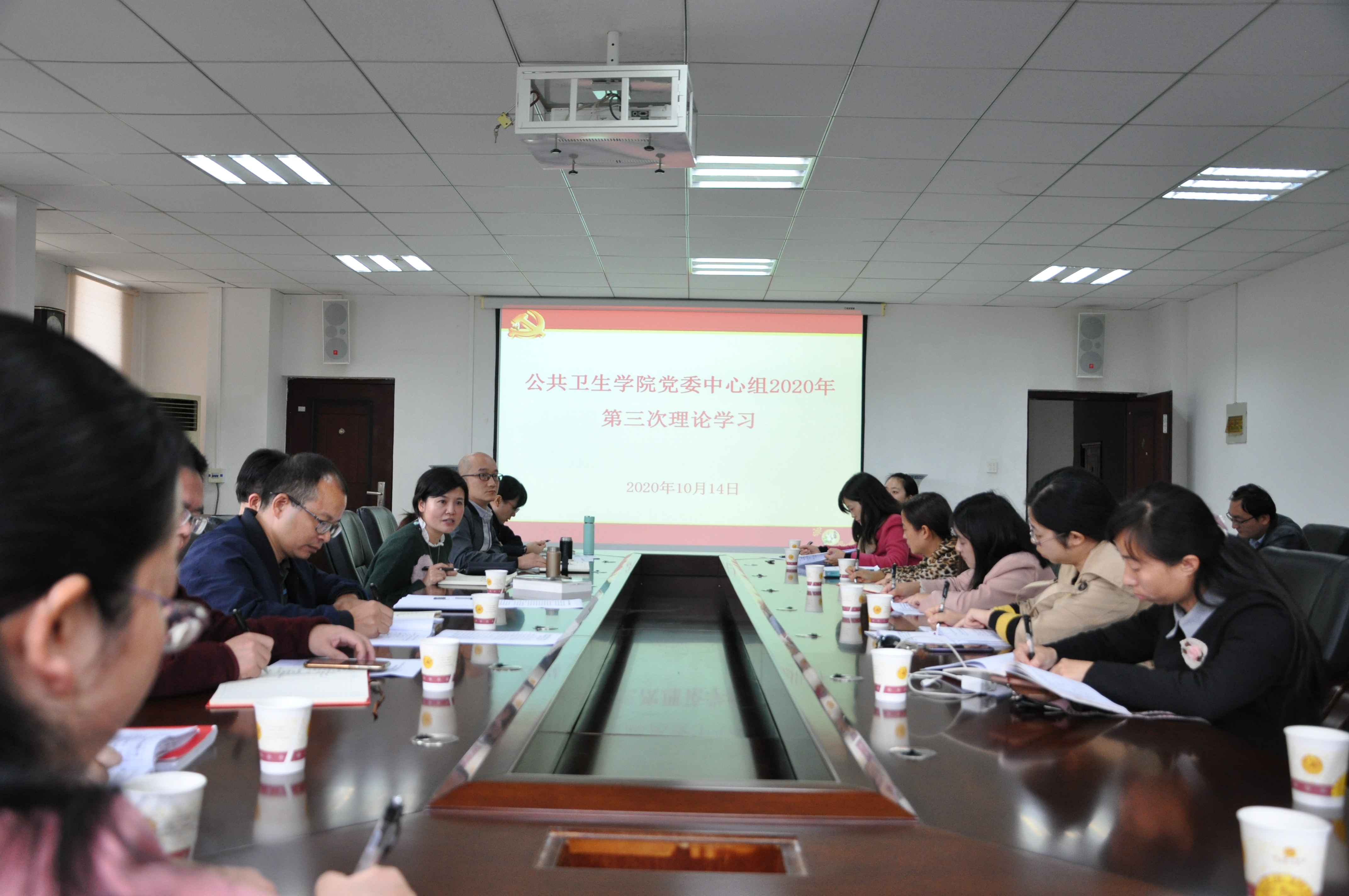 随后,党委中心组成员作交流发言。预防医学与妇幼保健学系主任朱焱和综合办公室副主任、教工第一党支部副书记陈峰峰分别作学习交流发言。