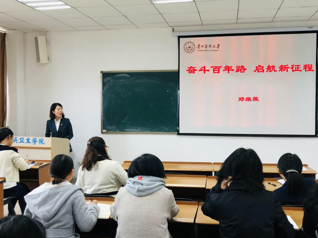 宣讲深刻阐述了习近平总书记“七一”重要讲话的重大意义、主要内容和丰富内涵,深入解读了中国共产党百年奋斗的光辉历程、伟大成就、宝贵经验。郑维薇指出大家要进一步深入学习领会习近平总书记重要讲话精神,加强党史学习,增强党性修养,做好本职工作,将个人理想与国家前途、民族命运同频共振,更好地将公共卫生事业融入党和国家事业发展大局,推动公卫学科的高质量发展。