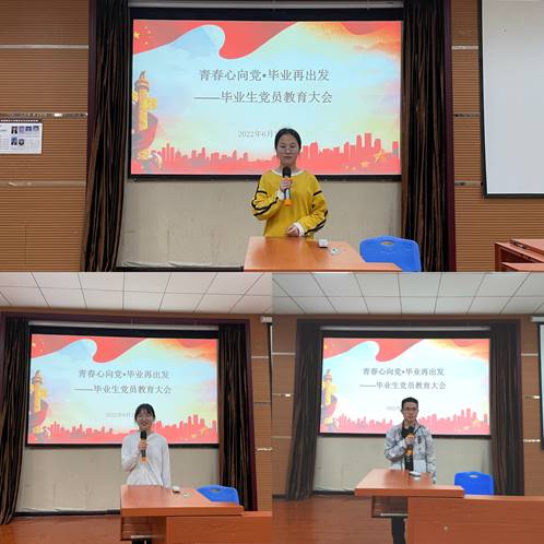 陈丽、王媛、付帅3名毕业生党员代表分享了自己的入党经历、感悟和成长体会。